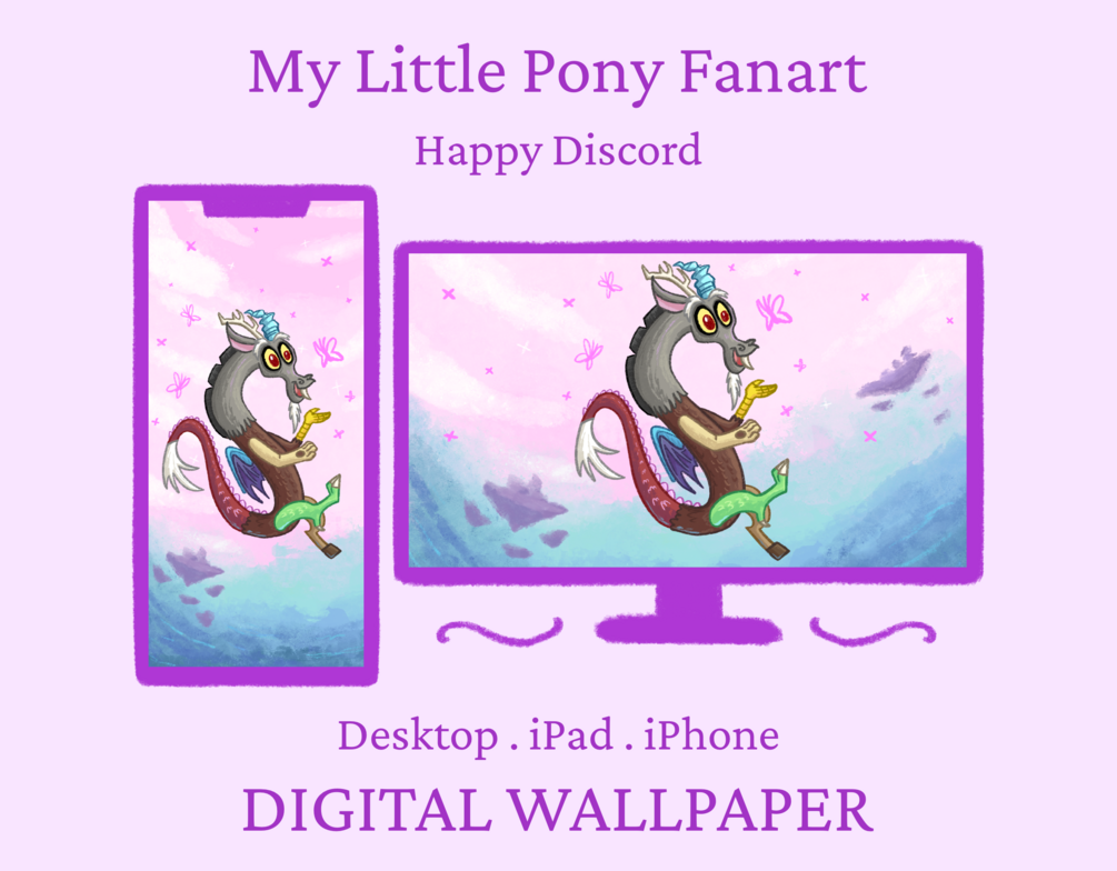 This wallpaper is a My Little Pony fanart of Discord on a nice day out. You'll get 4 .png wallpapers for desktop, ipad and iphone.