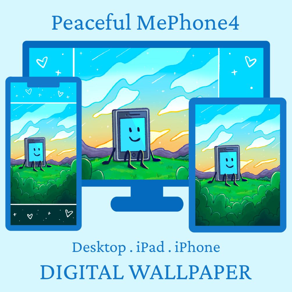 This is a wallpaper of Inanimate Insanity fanart of Mephone4 sitting on a hill peacefully. You'll get 5 .png wallpapers for desktop, ipad and iphone