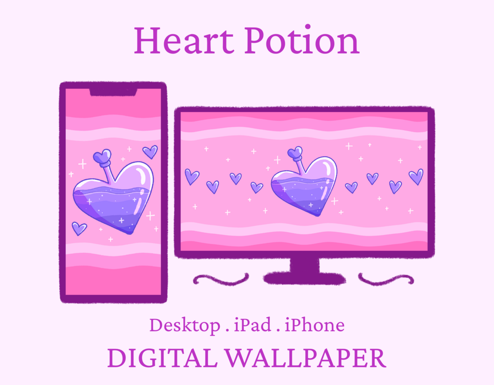Decorate your phones and computers with a wallpaper about love and heart potions! You'll get 3 hi-res .png wallpapers for desktop, ipad and iphone!