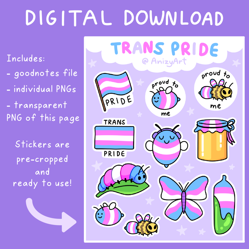 These digital stickers are perfect for celebrating your pride or support for transgender people! Decorate your digital spreads or download them to print them out for your own personal use.